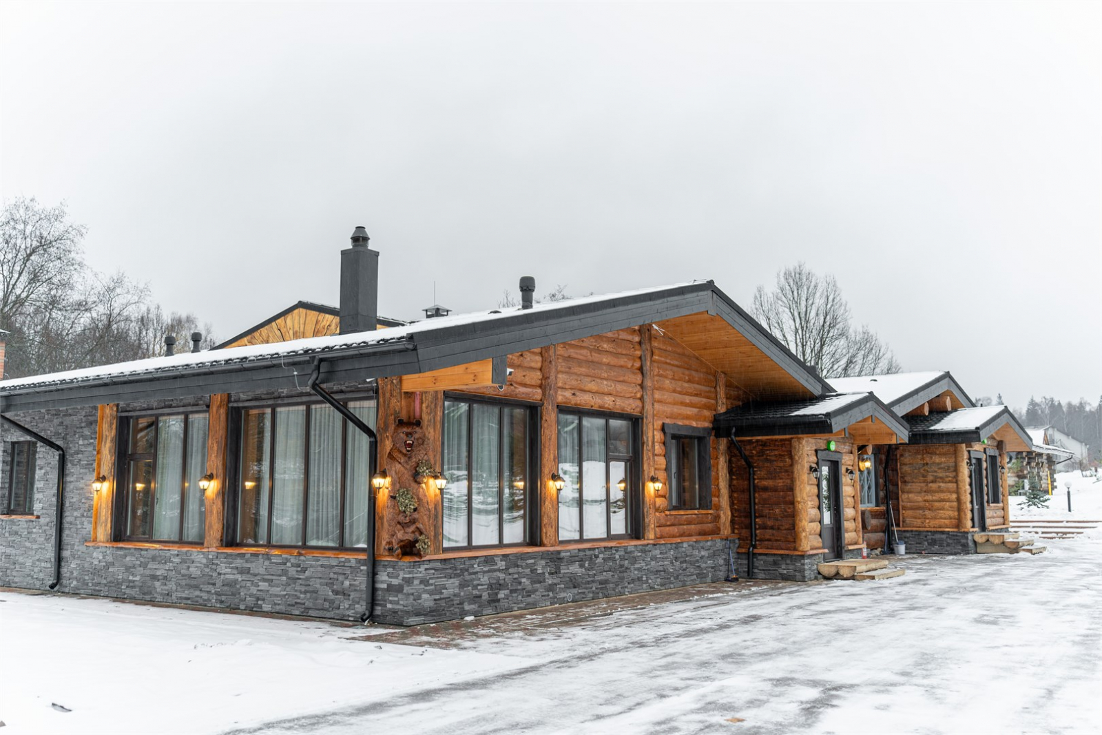 Сам коттедж «Медвежий угол» состоит из 2-х апартаментов: апартаменты «Каминные» и апартаменты «Гостевые», которые можно бронировать вместе.