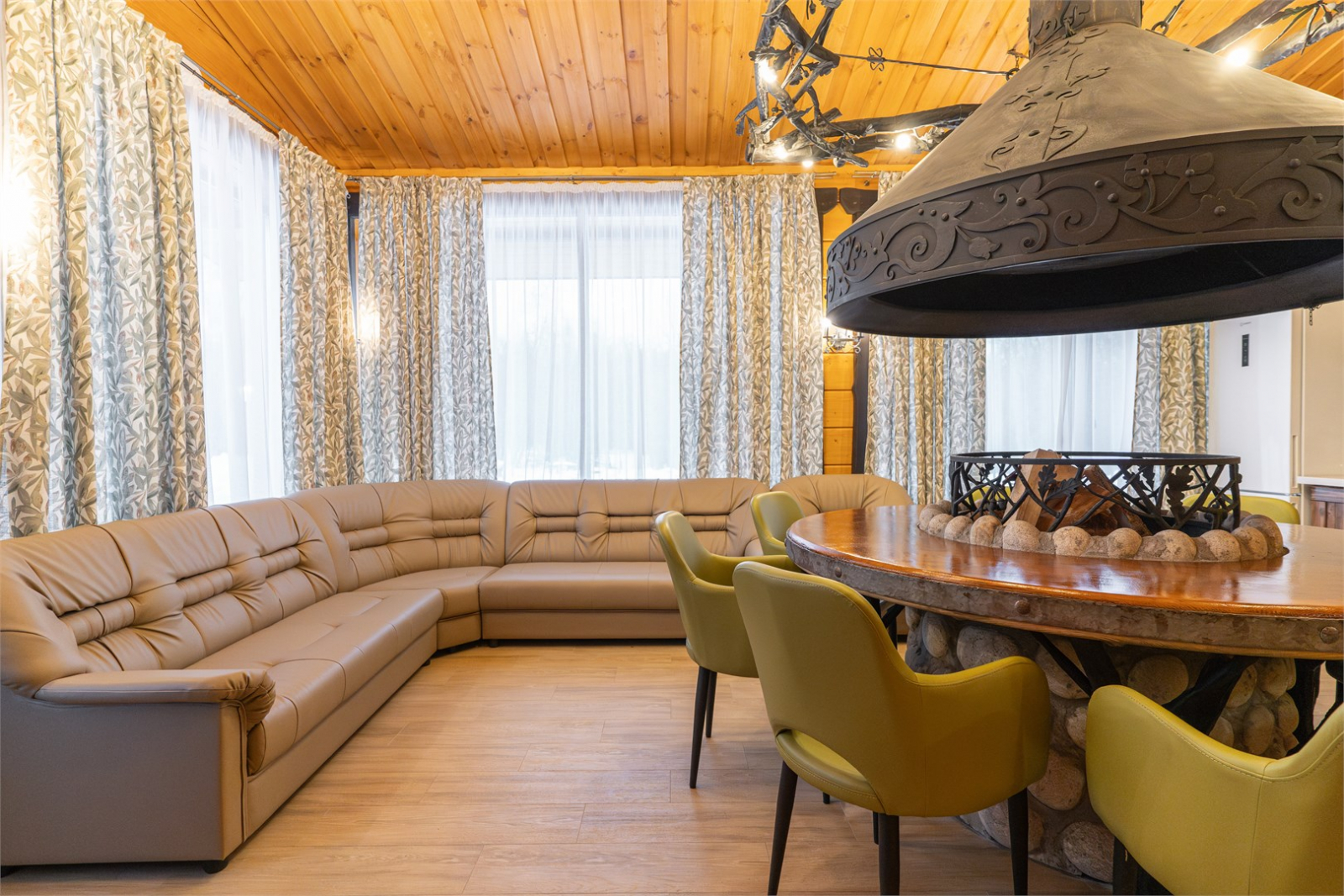 Они включают: две спальни, комфортную мини-кухню, стильную диванную гостиную зону с дровяным камином, Царскую парную и собственную террасу с дровяной купелью.